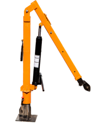 液壓款車載吊機最大的特點就是連接在立柱和吊臂之間的一臺類似液壓千斤頂的液壓傳動裝置,這個裝置的作用就是用來調節吊臂角度的,同液壓千斤頂的工作方式類似,我們可以通過徒手按動此裝置的手柄來進行頂升作業,隨著不斷的按壓手柄,吊臂開始被抬起,當我們需要復原的時候,則擰動泄壓閥,吊臂則順利的回歸初始位置。